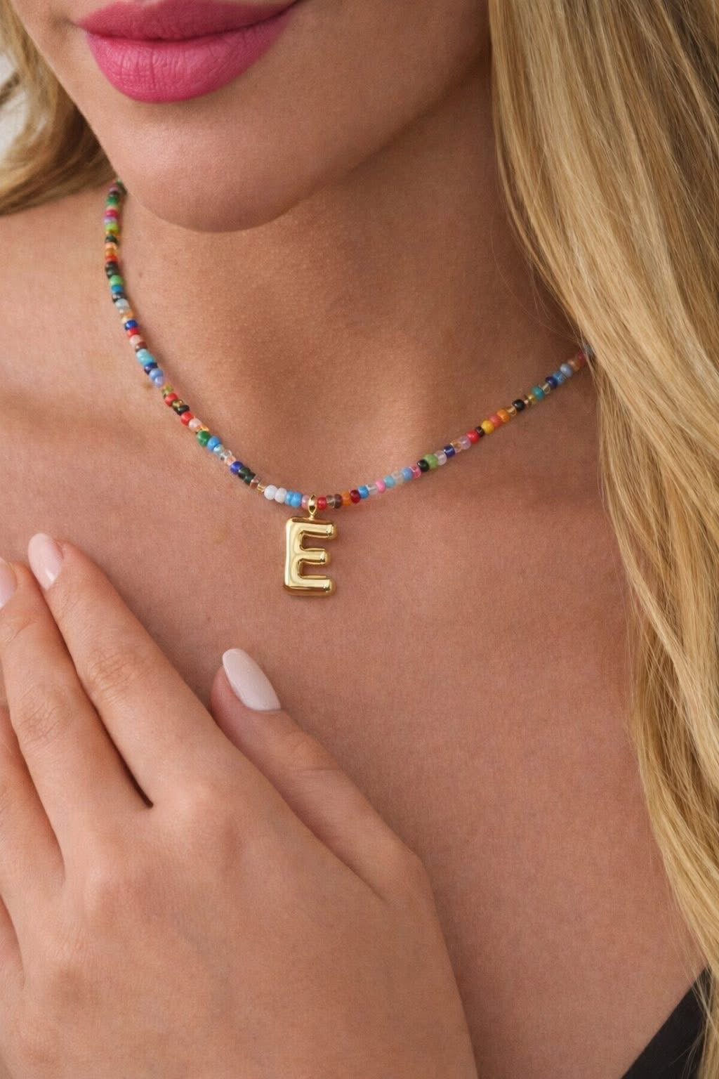 Add a pop of color and a personal touch with our Colorful Beaded Initial Necklace — the perfect everyday piece that’s as fun as it is meaningful. Featuring vibrant, multicolored beads paired with a sleek gold initial charm, this necklace is made to be worn solo or layered effortlessly.